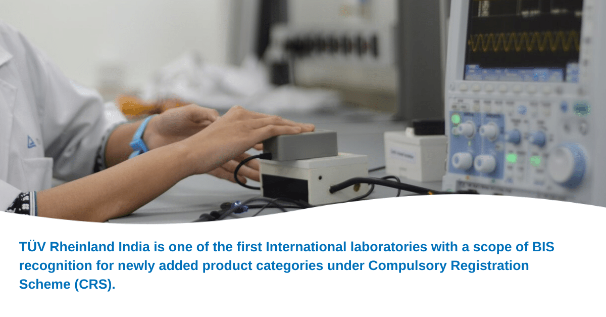 TÜV Rheinland India's Bangalore testing laboratory has received the recognition by the Bureau of Indian Standards (BIS) under the Compulsory Registration Scheme (CRS) for applicable IS standards to ...