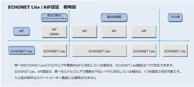 The ECHONET Lite communication protocol is being progressively adopted as the standard for communication between smart meters and HEMS (Home Energy Management System) controllers, and between HEMS controllers and HAN (Home Area Networks). A new certification scheme, known as AIF (Application Communication Interface) certification, is due to be launched as of April 1, 2016. AIF certification consists of testing and certification services, provided by third-party certification bodies in accordance with application communication interface specifications, for the purpose of improving interconnectivity between devices.