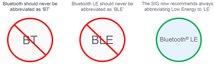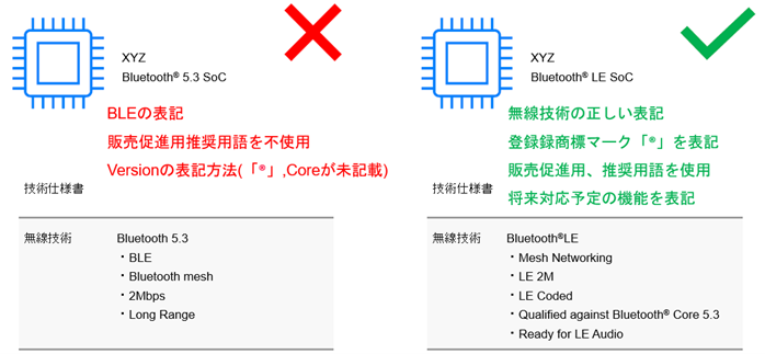 *BTやBLEといった表現は使用禁止です。Bluetooth®や Bluetooth®LEといった表記が推奨されています。