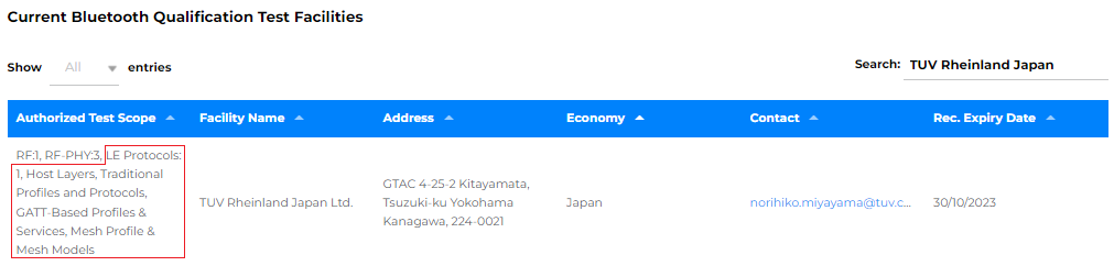 Bluetooth 認証コンサルタント(外部サイト:Bluetooth SIG)