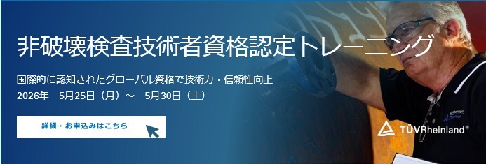 テュフ ラインランドのその他の非破壊検査技術者資格認定トレーニングサービスについては、こちらもご覧ください。 |