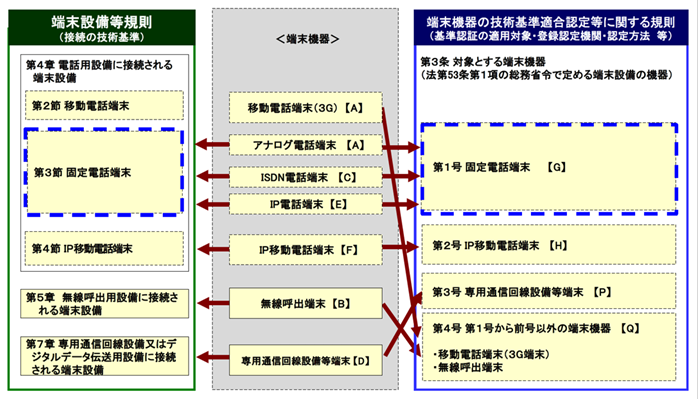 今まで端末機器種別についてはA、B、C、D、E、Fの区分とされておりましたが、本改正によりG、H、P、Qの区分となります。